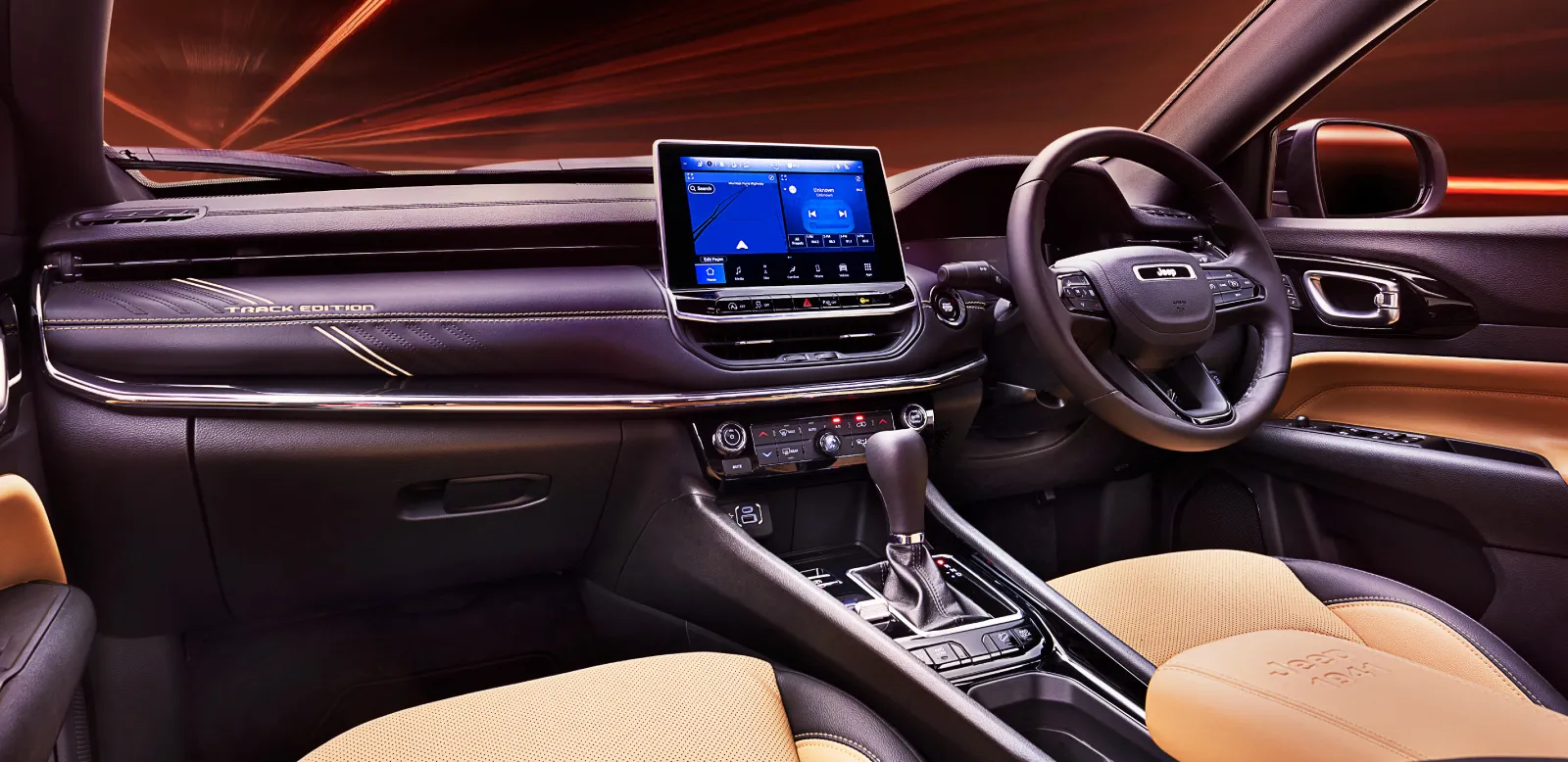 The new Jeep® Compass Track Edition is crafted for you. Refinement that’s not loud, yet speaks for itself. Step into plush Tupelo upholstery, ultra-luxe interior highlights, and a dual-pane panoramic sunroof that opens to your world. Because when you make the cut, you deserve a drive that does too.